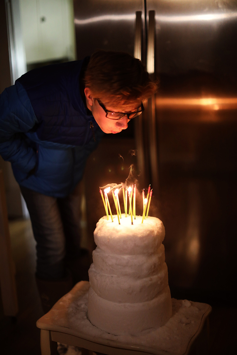 I know this because it’s my sons birthday. And plans have never been canceled. School has never been canceled. And he has never had a snow cake until today.